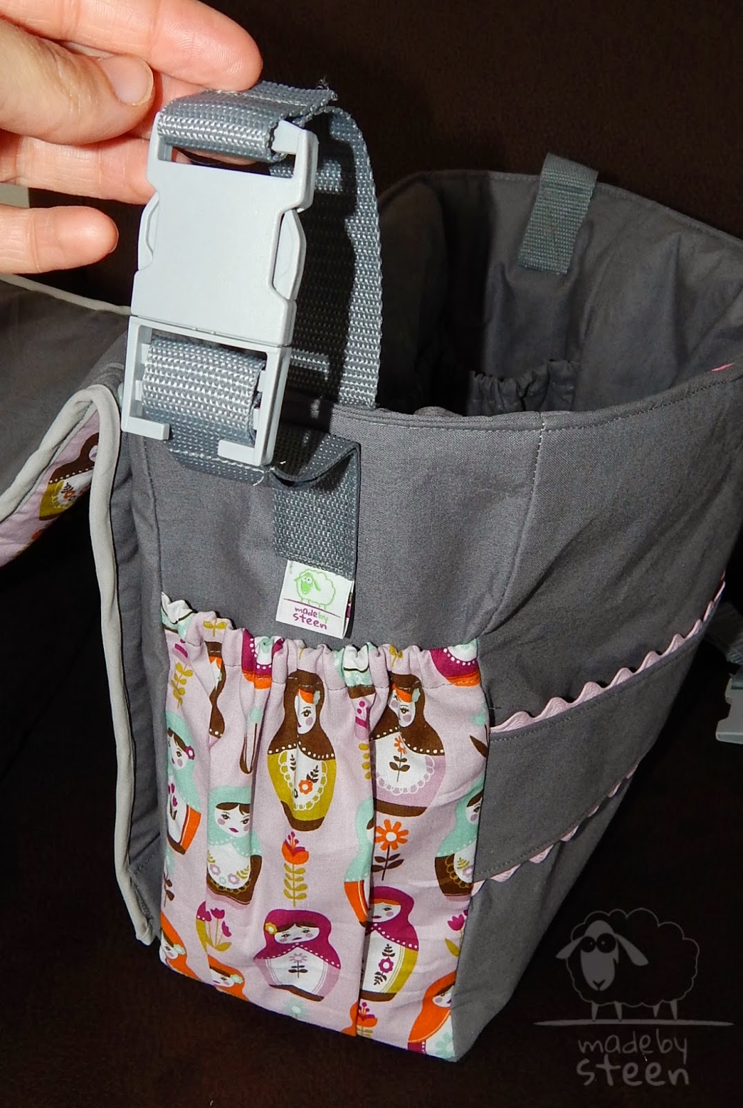 Man kann die Tasche sogar an den Kinderwagen hängen.
